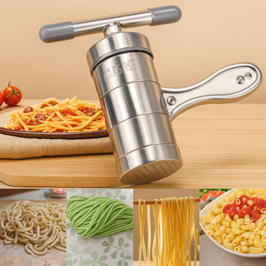 Craft delicious homemade pasta and more with this manual stainless steel pasta press, built for durability, precision, and versatility. ๐ Equipped with 5 interchangeable molds, it lets you create perfect spaghetti, noodles, or even use it as a fruit juicer, making it a truly multifunctional kitchen essential. Its ergonomic handle ensures smooth pressing with minimal effort, giving you full control over texture and thickness. ๐ช